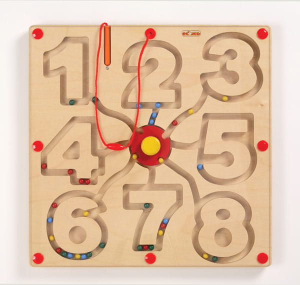 Plansza 35,5 x37,5 cm przeznaczona jest do zadań grafomotorycznych .Dołączono do niej  karty zadaniowe ( sześć sztuk)umieszczone pod spodem planszy. Wykonując zadanie z karty dziecko nie tylko pracuje ręką, lecz także głową.