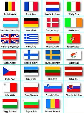 2. Mapa Europy z wyszczególnionymi flagami państw.