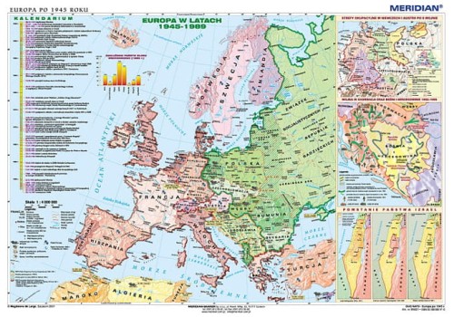 Panorama historii Polski od zakończenia II wojny światowej , przedstawiona na tle historii Europy i świata! Doskonałe uzupełnienie mapy Unii Europejskiej o kwestie społeczne, polityczne, narodowościowe i militarne! Taśma czasowa w formule kalendarium wydarzeń, z mocnymi akcentami na przemiany demokratyczne zachodzące w Europie - zmiana układu sił - wizualizacje kolorystyczne i manualne. Terroryzm polityczny. Załamanie systemu komunistycznego - ruchy społeczne i strajki pracownicze w Polsce.