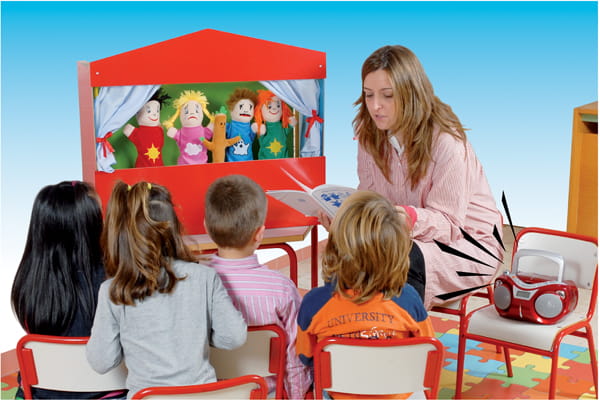 Możemy poznać świat emocji organizując przedstawienia teatralne. Kukiełki (dwustronne) w tym zestawie pokazują 8 podstawowych stanów emocjonalnych. W komplecie znajduje się płyta CD z nagraniem dwóch scenek w języku polskim, co umożliwia samodzielna zabawę. Do zestawu dołączono także kilka kart do ćwiczeń i kolorowania.
