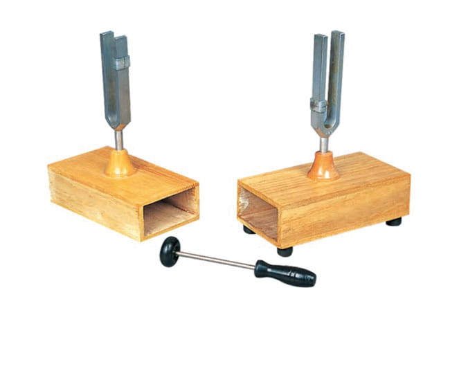 Pobudzając jeden kamerton do drgań nauczyciel może w prosty sposób zademonstrować uczniom powstawanie fal akustycznych. Natomiast korzystając z obu jednocześnie, wytłumaczyć zjawisko rezonansu i dudnienia. Wykonane z aluminium kamertony tworzą fale dźwiękowe o częstotliwości 440 Hz. Przesuwany obciążnik umieszczony na jednym z ramion pozwala na delikatne zmienianie częstotliwości drgań.