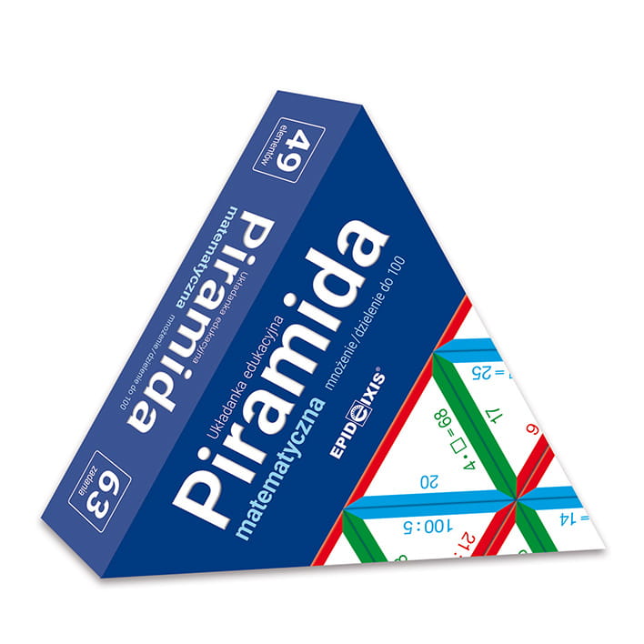 Piramida zawiera 63 działania z mnożenia i dzielenia w zakresie do 100, które dzieci rozwiązują, układając trójkąty w odpowiedniej kolejności – na zasadzie gry w domino. Poprawne wykonanie wszystkich zadań prowadzi do powstania imponującej piramidy, co dostarcza satysfakcji i motywuje do dalszej nauki.