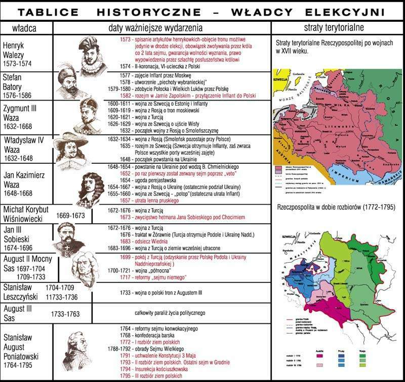 Tą pomoc dydaktyczną nauczyciel może wykorzystać na lekcjach historii w klasie IV, V, VI szkoły podstawowej. Komplet stanowią trzy tablice "Piastowie", "Jagiellonowie" i "Władcy elekcyjni" tworząc logiczną i zwięzłą całość merytoryczną i graficzną. Zwierają najistotniejsze wiadomości z rodzimej historii oraz podkreślają i uwypuklają najważniejsze fakty poszczególnych okresów historycznych za panowania Piastów, Jagiellonów czy władców elekcyjnych.