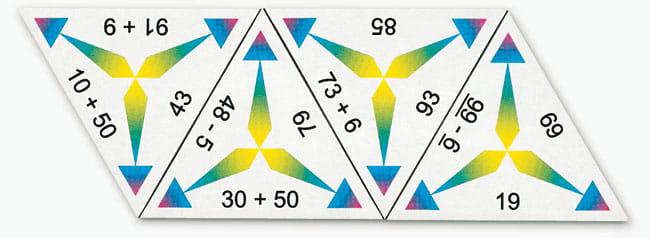 Układanka działa na zasadzie gry w domino, jednak elementy mają kształt trójkątów. Na każdym boku trójkąta zapisane są zadania lub odpowiedzi. Celem dzieci jest takie połączenie trójkątów, aby dopasować odpowiedzi do zadań, tak aby wszystkie stykające się boki pasowały do siebie. Poprawnie ułożona figura umożliwia szybką samokontrolę poprawności wykonania wszystkich zadań.