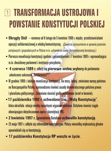Przedstawia opisaną w punktach transformację ustrojową i powstanie Konstytucji Rzeczypospolitej Polskiej. |