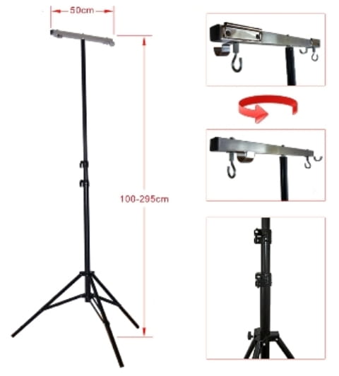 Stojak produkujemy na bazie elementów z których wykonywane są profesjonalne trójnogi do ekranów projekcyjnych, zatem cechuje go solidność, estetyka wykonania oraz dbałość o szczegóły a zastosowanie amortyzujących sprężyn, w każdym segmencie, pozwoliło połączyć stabilność i wytrzymałość z mobilnością poręcznej i lekkiej konstrukcji.